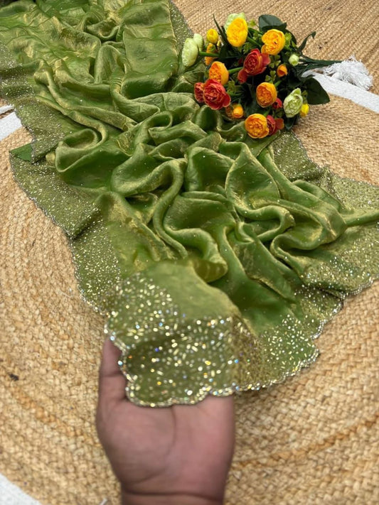 Crunchy Chiffon Saree with Flower Embroidery & Hand Moti Work